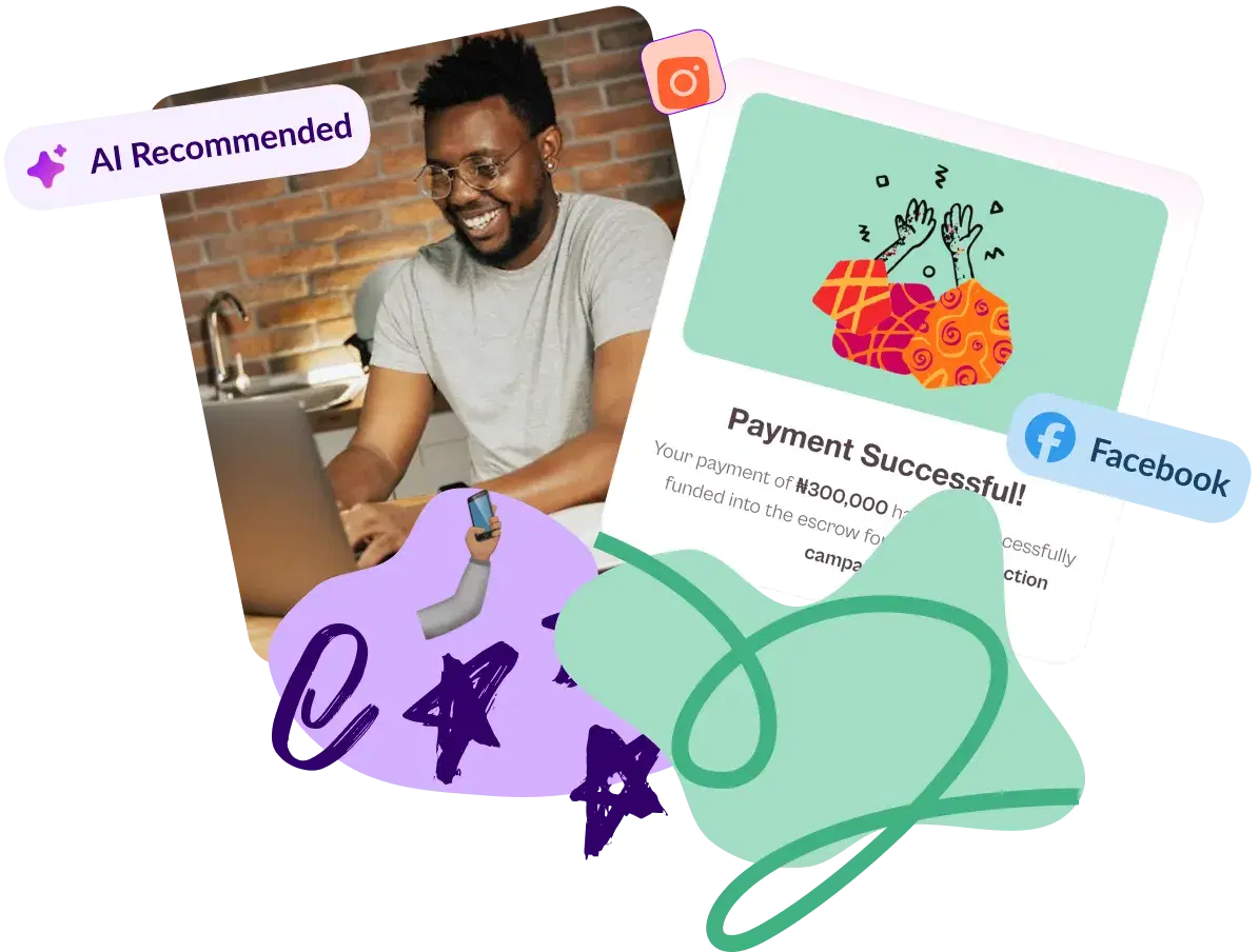 With our built-in escrow system, we ensure funds are held securely and only released when the campaign milestones are met, giving you peace of mind throughout the process.